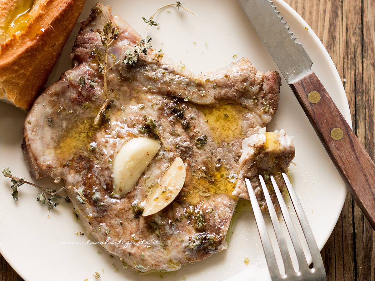 Come ho sottolineato negli ingredienti, il mio suggerimento è quello di procurarvi delle Braciole di maiale (Costolette di maiale) con osso, sono più spesse e più saporite. Quelle senza osso sono più sottili e naturalmente necessiteranno di una cottura ancora più breve rispetto a quella indicata. Quindi se volete utilizzare queste ultime, calcolate 1′ in meno di cottura.