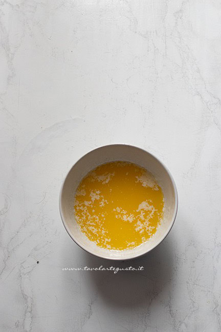 Poi in una ciotola grande versate il burro cremoso, il brown sugar e lo zucchero bianco: