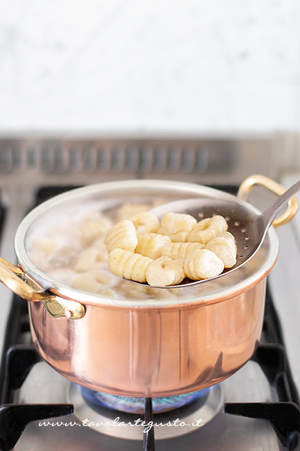 Quando gli gnocchi di patate salgono completamente in superficie, significa che sono pronti per essere scolati e conditi: