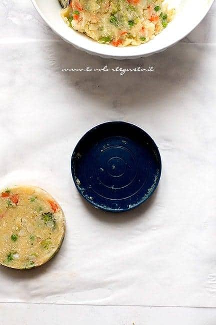 Formate quindi i vostri Hambuger vegetariani con lo strumento apposito oppure dandogli la forma con le mani, spessore 1,5 cm circa , ne verranno circa 6