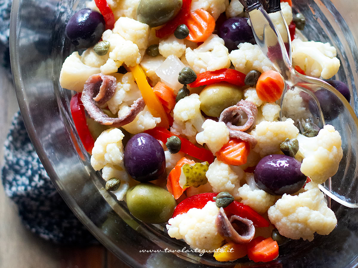 La giardiniera da utilizzare dev’essere composta di sottaceti misti, in particolare carotine.