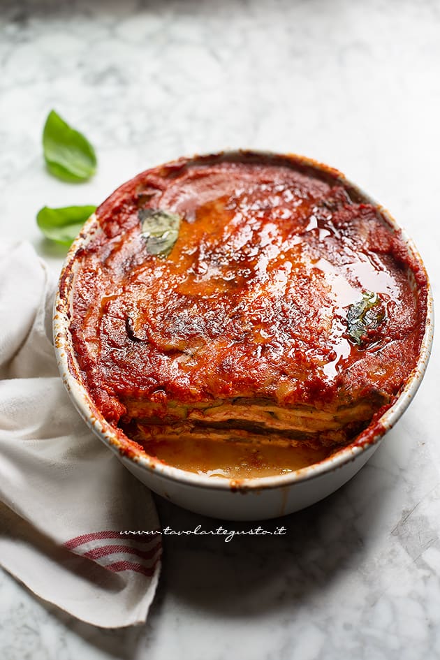 Ecco pronta la vostra Parmigiana di melanzane e zucchine